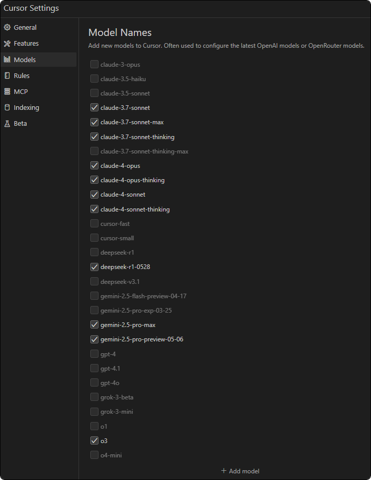Cursor now supports the DeepSeek R1 0528 model, but it’s not enabled by default. You need to go to Cursor Settings -> Models, find “deepseek-r1-0528”, and check it to enable it.